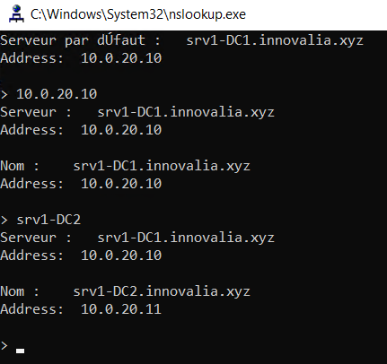 - Ajouter un nouvel hôte A dans le serveur DNS du datacenter 1 et un autre dans le serveur du datacenter2 et vérifier s’ils se répliquent bien dans les deux sens.