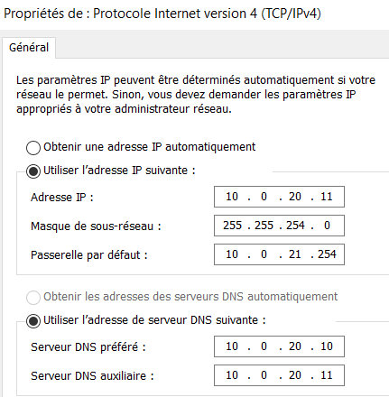 Sur la carte réseau souhaité, il faut effectuer un clic droit puis accédé à propriété pour nous permettre de changer les paramètres de la carte réseau :