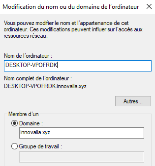 Nous allons ajouter notre pc au contrôleur de domaine :